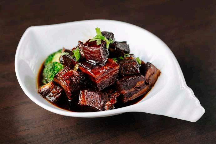 La Mom’s menu is Sichuan dominant, even featuring a subsection of “Modern Szechuan Dishes” like a stack of chile-crusted grilled pork ribs, deep-fried and weeping with scarlet oil. And there’s another regional twist: ten di erent bowls of rice noodles, a specialty of the southern city of Guilin, which is nowhere near either Sichuan Province or Shanghai.