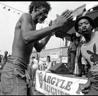 CAPTIONS, CLOCKWISE FROM TOP LEFT: JULIE GREENBERG AND JEFF JENKINS, MIDNIGHT CIRCUS, 1997; JIM’S ORIGINAL HOT DOG STAND, MAXWELL STREET, 1993; UPTOWN STREET FESTIVAL, 1988; NORTH AVENUE BEACH CHESS PLAYERS, DATE UNKNOWN; GERRI OLIVER AT THE PALM TAVERN, 2001