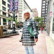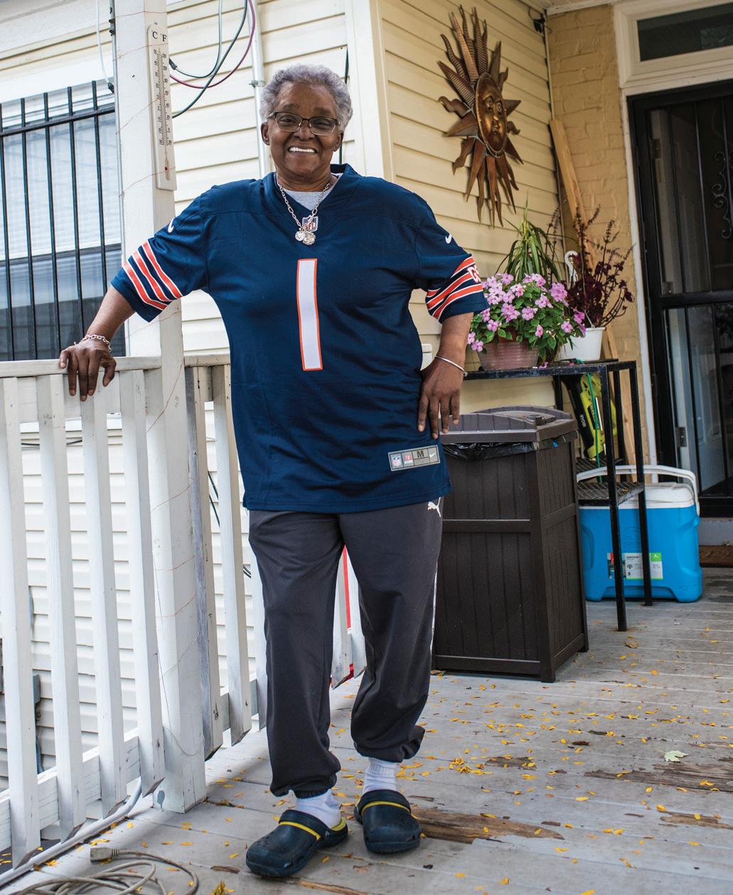“Iguess I’m an eclectic dresser,” says Mary Gri n, 72, who currently works part-time at Essential Elements-Chicago boutique in Avalon Park. “Everything about me is eclectic. My home is eclectic. There’s not a pair of anything in my house—nothing matches. My friends enjoy coming over to my house because they say it’s like going to a small museum. Everywhere they look, they see something different,” adds Griffin. She says she takes inspiration from magazines, art, nature, and life itself. “I love nature. Being outside and looking at the trees, the grass, and life in general. You see, life is supposed to be eclectic. We’re supposed to see beauty in everything. Even in something ugly or trashy.”