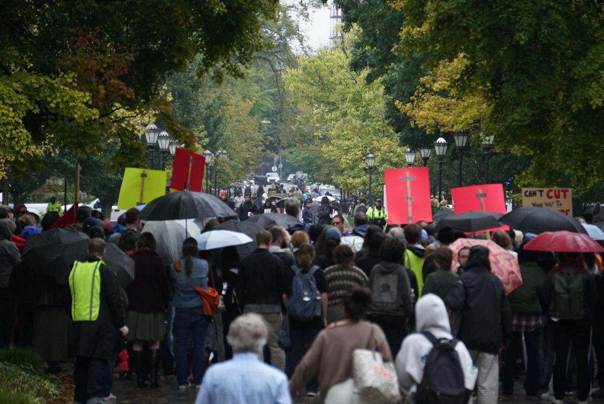 Five Labor Unions Rally on Quad, Demand a Stop to Budget Cuts