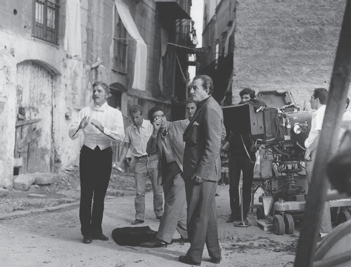 Robert Duvall, Tere Livrano, John Cazale, Gianni Russo, Talia Shire, Morgana King, Marlon Brando, and James Caan. Photo by Paramount Pictures/Getty Images | next page, from left: Giuseppe Tomasi di Lampedusa (1896–1957) seated in the gardens of Villa Piccolo at Capo d’Orlando, Sicily, 1956, which he often visited as a cousin of the family. Piccolo Family Foundation of Calanovella | Burt Lancaster (1913–1994) and Luchino Visconti (1906–1976) on the exterior set of Il Gattopardo, 1963, Piazza Croce dei Vespri, Palermo, Sicily