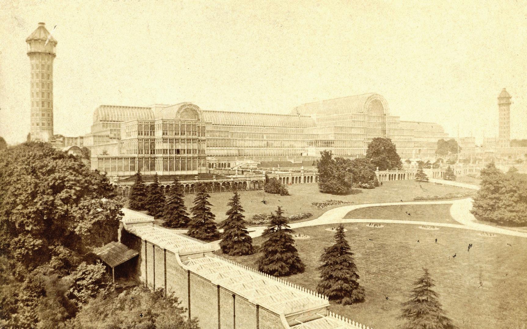 previous page, from top: Pyotr Tchaikovsky, photograph by Mikhail Panov (1836–1894), ca. 1860. State P.I. Tchaikovsky Memorial Museum, Klin, Russia | Tchaikovsky, standing far right, with his father Ilya (1795–1880) and the Davydov family at Kamenka, 1875 | this page: The Crystal Palace at Sydenham, southeast London. Photograph by Francis G.O. Stuart (1843–1923), ca. 1870–1900, showing the relocated and reconstructed exhibition hall where Tchaikovsky’s Third Symphony received its British premiere in 1899. The building was destroyed by fire in 1936. Photo by Sepia Times/Universal Images Group via Getty Images