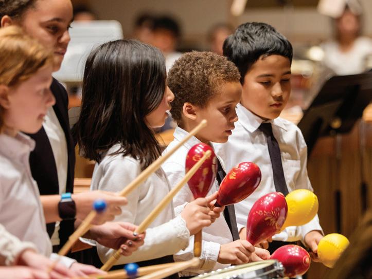 Current Negaunee Music Institute programs includes thirty-six CSO School and Family Concerts offered at Symphony Center, with dozens more presented in schools across Chicago; open rehearsals for high school music students, seniors, veteran and other community groups; more than seventyfive in-depth school partnerships; online learning resources; the Civic Orchestra of Chicago, a preeminent ensemble for early-career musicians; intensive training and performance opportunities for youth including the Percussion Scholarship Program, Chicago Youth in Music Festival, CrainMaling Foundation CSO Young Artists Competition, and Young Composers Initiative; social impact initiatives such as Notes for Peace for families who have lost loved ones to gun violence, and collaborations with the Chicago Refugee Coalition; and music education activities during CSO domestic and international tours. Worldwide, the Negaunee Music Institute’s annual reach exceeds 200,000 people through programming in-person and online.