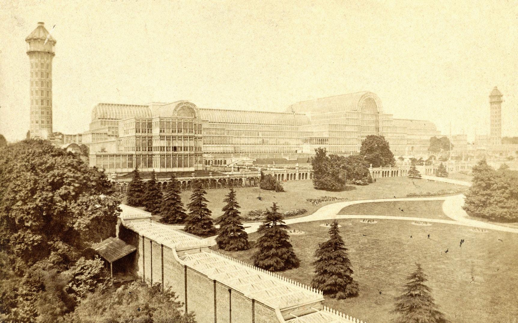 opposite page, from top: Pyotr Tchaikovsky, photograph by Mikhail Panov (1836–1894), ca. 1860. State P.I. Tchaikovsky Memorial Museum, Klin, Russia | Tchaikovsky, standing far right, with his father Ilya (1795–1880) and the Davydov family at Kamenka, 1875 | this page: The Crystal Palace at Sydenham, southeast London. Photograph by Francis G.O. Stuart (1843–1923), ca. 1870–1900, showing the relocated and reconstructed exhibition hall where Tchaikovsky’s Third Symphony received its British premiere in 1899. The building was destroyed by fire in 1936. Photo by Sepia Times/Universal Images Group via Getty Images