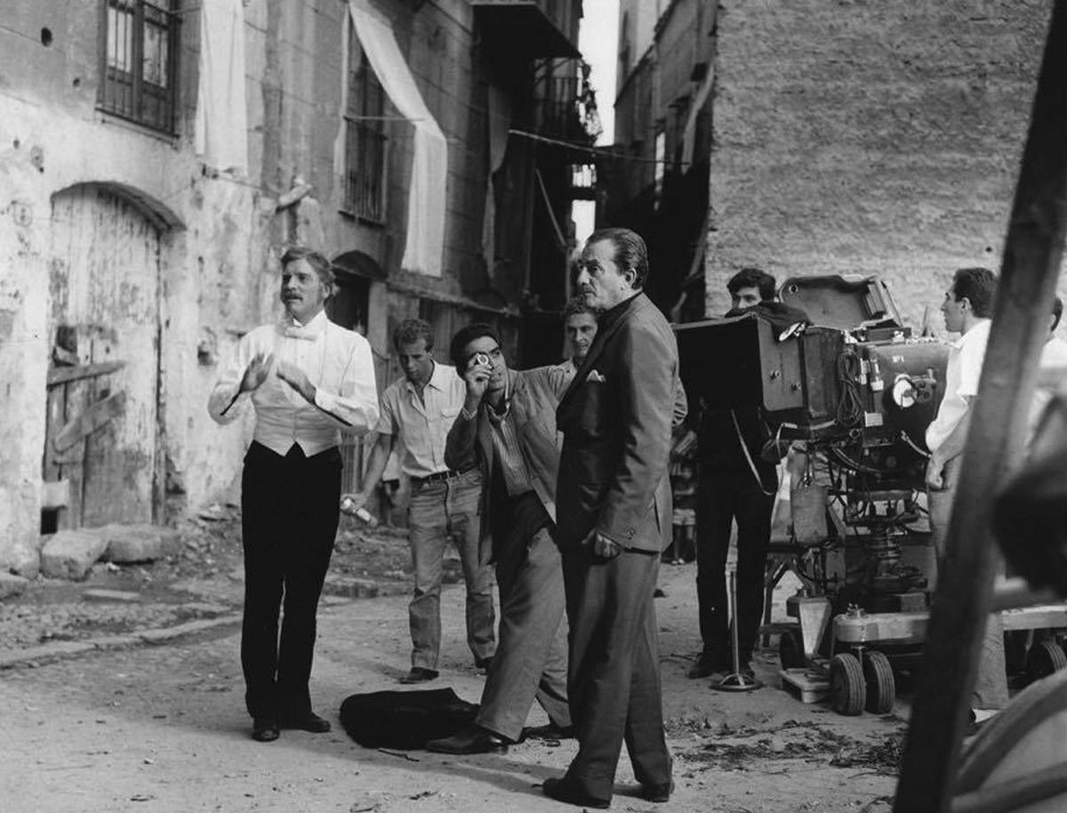previous page, from top: Nino Rota, ca. 1972. Photo by Keystone/Hulton Archive/Getty Images | The Godfather cast, 1972, a family portrait during the wedding scene from the film. Left to right, Robert Duvall, Tere Livrano, John Cazale, Gianni Russo, Talia Shire, Morgana King, Marlon Brando, and James Caan. Photo by Paramount Pictures/Getty Images | opposite page, from left: Giuseppe Tomasi di Lampedusa (1896–1957) seated in the gardens of Villa Piccolo at Capo d’Orlando, Sicily, 1956, which he often visited as a cousin of the family. Piccolo Family Foundation of Calanovella | Burt Lancaster (1913–1994) and Luchino Visconti (1906–1976) on the exterior set of Il Gattopardo, 1963, Piazza Croce dei Vespri, Palermo, Sicily