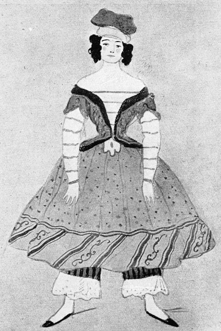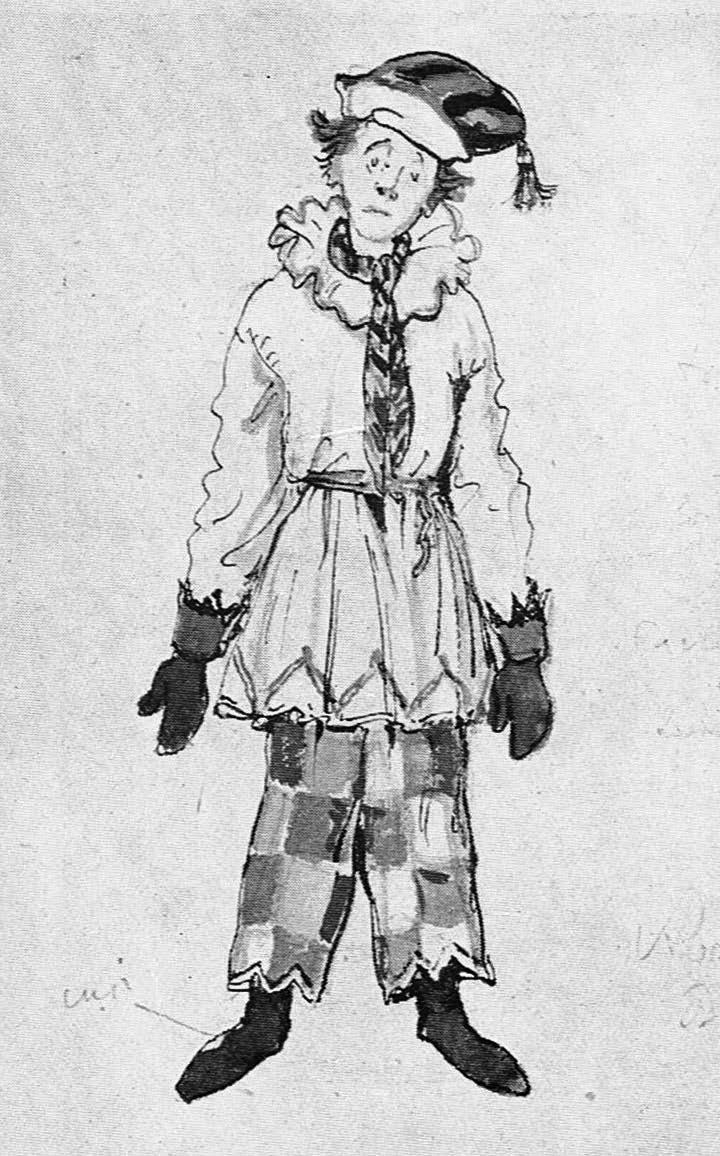 opposite page: Costume designs by Alexandre Benois (1870–1960) for the ballerina and Petrushka, 1910. Images as reproduced in Ballet Design: Past and Present by C.W. Beaumont (1946)