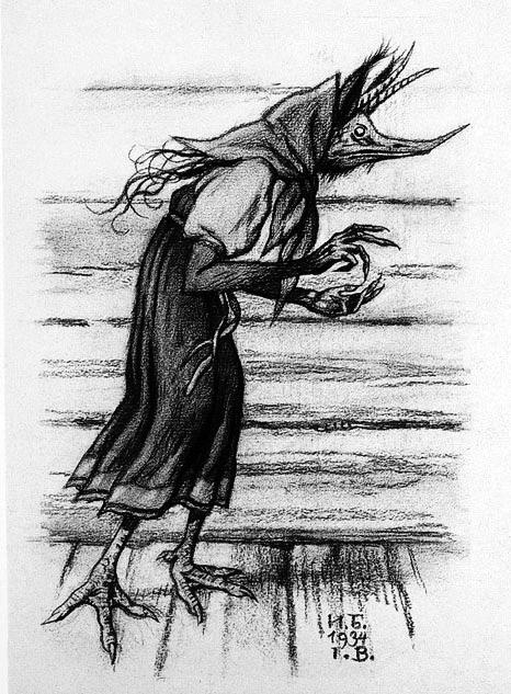 from top: Anatoly Liadov, portrait in oil by Ilya Repin (1844–1930), 1902 Kikimora, a sketch by illustrator and stage designer Ivan Bilibin (1876–1942), 1934