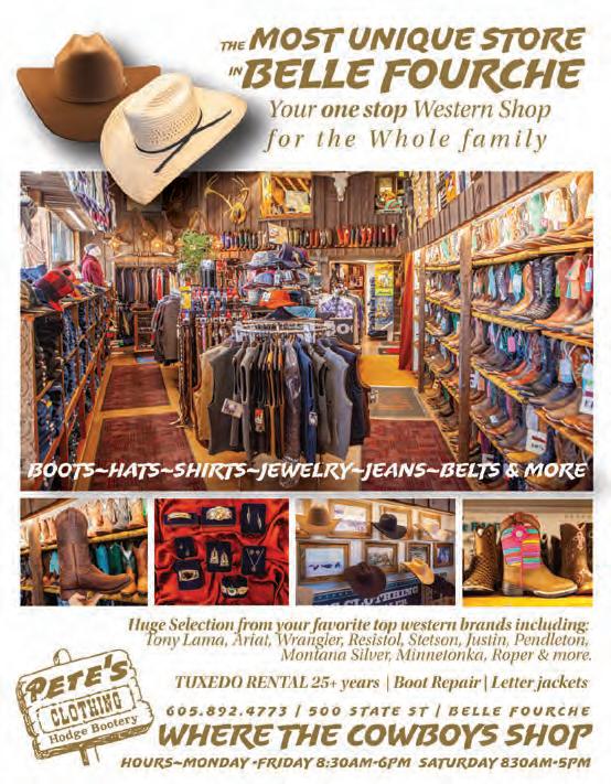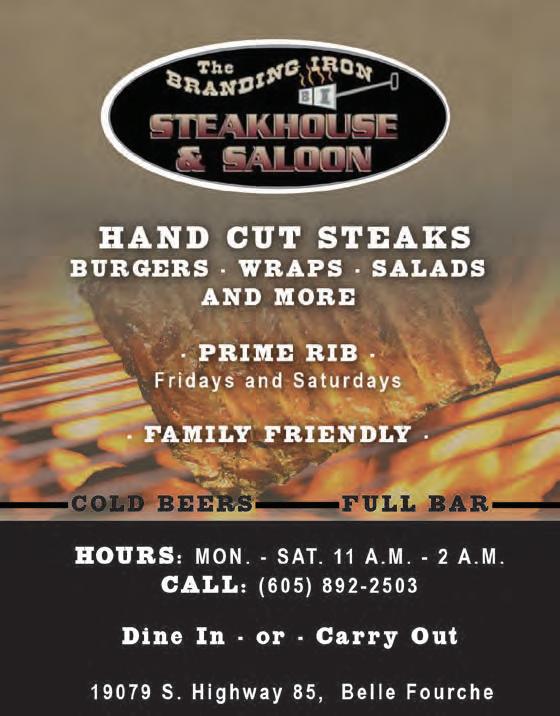 • ADVERTISE IN THE STURGIS & FOOTHILLS MONTHLIES 523 GRANT ST - BELLE FOURCHE, SD 605.892.4540 EXPIRES12/31/2022 Like us on Facebook! @sandcreekprintingbelle Any purchase $25.00 or more when you show this ad at time of purchase YOUR FRIENDLY, LOCALLY OWNED NEIGHBORHOOD GROCER SOUTH DAKOTAN 40 5TH AVE, BELLE FOURCHE MADE PRODUCE ENJOY April Johnson’s Fresh Dill Dimock Cheese & Butter
