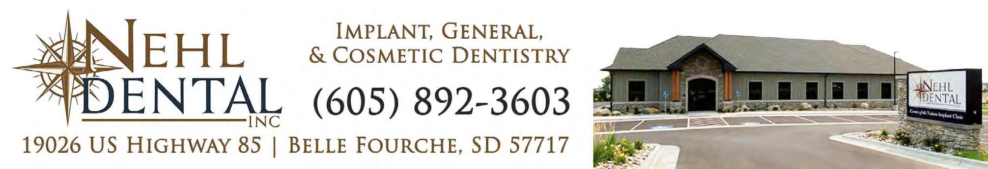 WHY A DENTAL IMPLANT? • A missing tooth or teeth can be replaced by a dental implants(s) without altering the health of adjacent teeth. • Dental implants look and feel like natural teeth and can last a lifetime. • Implants can help stabilize a denture. DENTAL IMPLANTS | DENTAL CLEANING & EXAMS | GUM DISEASE TREATMENT PARTIALS & DENTURES | CROWNS & BRIDGES | TEETH WHITENING | COSMETIC DENTISTRY FRIENDLY & GENTLE DENTAL CARE FOR ALL AGES MATT NEHL, DDS, DICOI CHRISTOPHER PRITCHARD, DDS (605) 892-3603 www.nehldental.com 19026 US Highway 85 | Belle Fourche, SD 57717 CENTER of the NATION IMPLANT CLINIC IMPLANT, GENERAL, & COSMETIC DENTISTRY Diplomat, Master and Fellow-International Congress of Oral Implantologists Associate Fellow - AAID