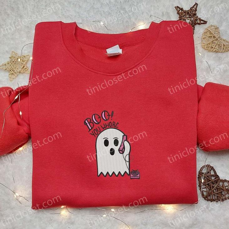 Introducing the Boo You Whore Embroidered Shirt, the ultimate Halloween must-have! Made with high-quality materials, this shirt features a spooky yet stylish design that will turn heads at any costume party. The intricate embroidery adds a touch of elegance to your Halloween outfit, making it the perfect statement piece. Not only will you look fabulous, but you'll also feel comfortable all night long thanks to the soft and breathable fabric. This shirt is not just for Halloween - it's a versatile piece that can be worn all year round to showcase your unique sense of style. Surprise your friends with this unforgettable gift and watch their faces light up with joy. Get ready to be the center of attention with our Boo You Whore Embroidered Shirt - the best Halloween gift idea for any fashion-forward individual. Don't miss out on this limited edition item - order now and add a touch of spooky chic to your wardrobe!