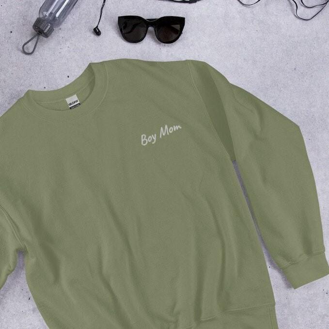 Green Mama Boy Mom Sweatshirt: Embroidered