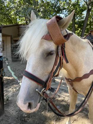 Bentley is my baby boy...I've had him for about 2 months now!!!! I've loved horses for forever and have been riding for around 20 years, but have never had a horse of my own. Earlier this year, I began volunteering at a local ranch to get some more experience around horses (and hope that the owner would let me ride in exchange for work!), and Bentley was a horse that was boarded there. He had a lot of behavioral issues and his owner couldn't often come see him, so I offered to help her out by working with him since I was there so much. The two of us clicked immediately and everyone saw it. After a couple months, his owner did the most selfless thing ever and GIFTED him to me...which I am still in awe about. He is my best friend and even though he has issues, we work through them together. We build our trust everyday!! He loves stud muffin treats, being pampered, and going fast (he's a speed demon!). He's in his mid-teens and is a Tennessee Walking Horse. I recently shaved a Cutie mark onto him as well!