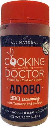 Adobo BBQ Seasoning with Turmeric and Moringa di Cooking with my Doctor è una salsa venduta in confezioni da 7,5 once. Si tratta di un prodotto completamente naturale che contiene super-alimenti nato dalla collaborazione tra uno chef e un medico. Senza glutammato monosodico né coloranti artificiali, privo di glutine è adatto alle diete vegane e keto. Tra gli ingredienti si annovera il sale kosher. In grado di dispensare i benefici di curcuma e moringa, questo prodotto esplica il suo potere antiossidante e antinfiammatorio, è in grado di attivare la circolazione e concorre ad accelerare il metabolismo e a favorire la digestione.