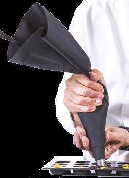 Ideata da Martellato, BlackPoche è la sac à poche riutilizzabile in materiale tecnico, che garantisce resistenza anche con impasti densi, corposi o a base di burro. La struttura impermeabile evita qualsiasi tipo di trasudamento, anche con preparazioni ricche di grassi, assicurando un lavoro pulito e preciso. Pensata per un utilizzo intensivo, è lavabile in lavastoviglie, non trattiene cattivi odori e mantiene una qualità costante anche dopo numerosi cicli di lavaggio. È adatta al frigorifero e resiste a temperature fino a +70°C, rendendola versatile per tutte le fasi della preparazione, sia dolce che salata. L’interno antiaderente permette un rilascio controllato e preciso dell’impasto. L’esterno antiscivolo assicura una presa stabile anche durante le lavorazioni più complesse, migliorando comfort e precisione. martellato.it