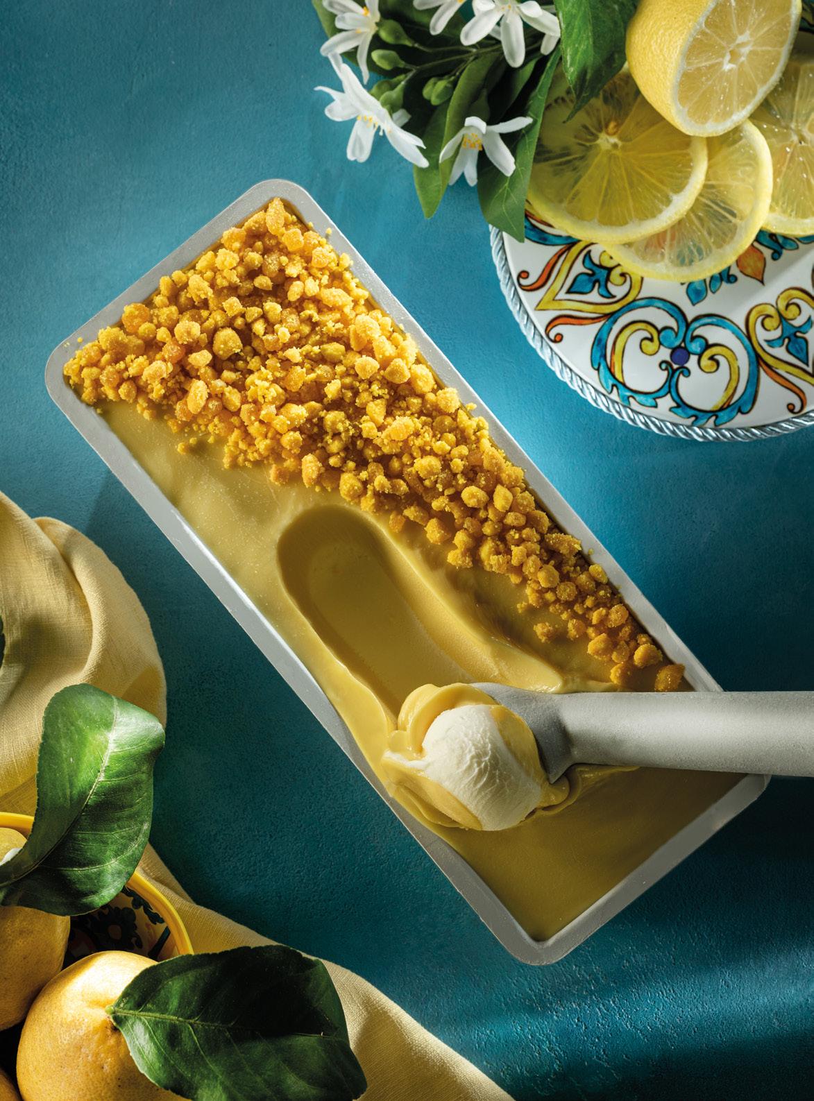 Costiera Amalfitana. Un gelato al gusto di torta al limone ricoperto da una crema Morettina al limone con una nota di zagara, e il tocco croccante dell'esclusivo biscotto crumble al limone, con tante scorzette candite. Un successo annunciato.