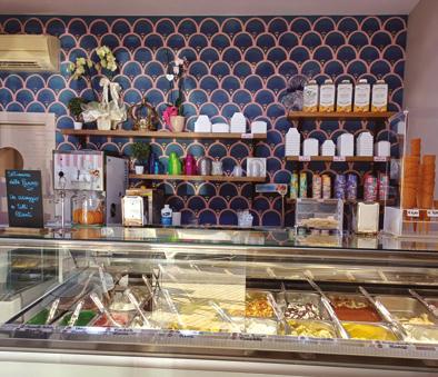 che hanno approfondito le loro conoscenze anche grazie a “Scienza e tecnologia del gelato” di Luca Caviezel, “la Bibbia del gelato” e pubblicato dalla nostra casa editrice (shop.chiriottieditori.it). Il negozio di 60 m2, che presenta una parete decorata dall’artista Lisa Londi, punta su una clientela locale e sulla vicinanza di scuole, negozi e impianti sportivi. Il banco ospita 24 gusti fra creme, due tipi di cioccolato, il loro cavallo di battaglia, la Crema croccante con base crema caramello e croccante, e sorbetti come limone, fragola, melone e mango. Completano l’assortimento semifreddi e crêpes.