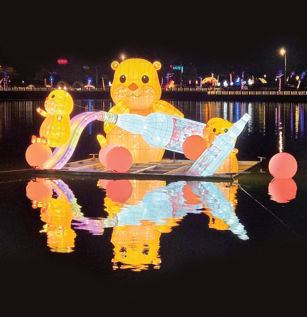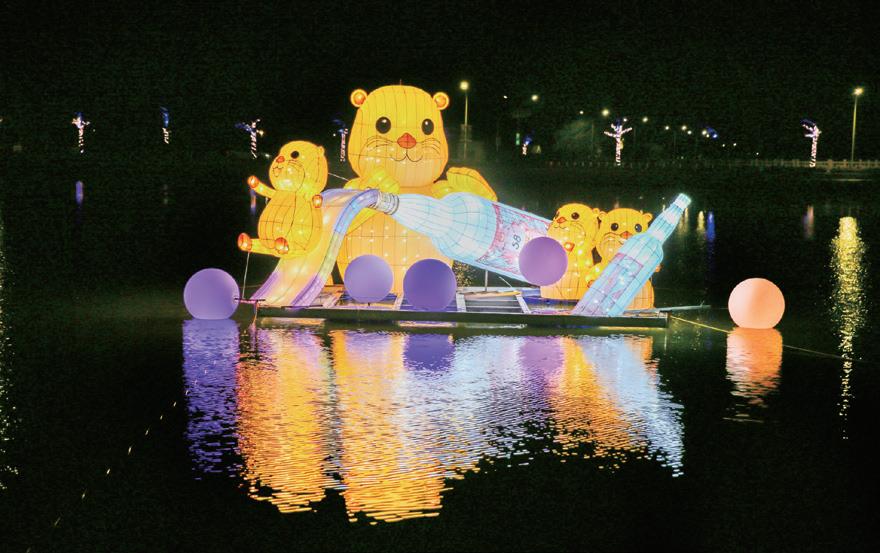 文化局也準備多項精美禮品贈送給答對 今年元宵燈節以「樂園」概念規劃場域,將整個莒光共融 公園打造為夜間光影樂園,水域燈區的燈景照映在水面上, 相當特別。 水域燈區的燈有可愛的水獺,相當吸睛。