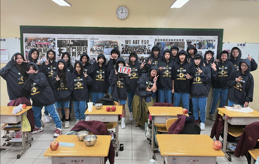 還有牆上另一處標語:「愛的教育 鐵的 紀律」,一首:「九條好漢在一班」軍歌響 徹雲霄,氣壯山河的雄壯,青春無敵,只想 為青年學子奉獻自己對教育的熱情,如今看 見當年的學生個個崢嶸頭角,在家鄉金門或 在臺灣、在海外,各個領域開創出一片天, 當年的兢兢業業、不捨晝夜,回頭看看:無 悔青春,因為青春不留白,何其有幸在教育 的園地裡成為一名園丁!