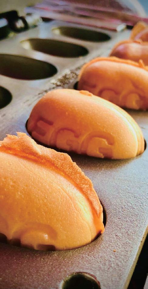 叁 食雞蛋糕最具辨識度的是獨特的蛋形 造型設計,不僅視覺吸睛,也能容納更多內 餡,讓每一口都充滿真材實料的滿足,正是 Kerry 想帶給顧客平凡裡藏著用心的感受,它 不只是解饞的零嘴,更是一種生活美學的體 現。這種將「傳統小吃手工化、甜點化」的 努力,讓叁食雞蛋糕在金門逐漸建立了口碑, 成為當地人推薦的必吃美食。她證明了即使 是最平凡的雞蛋糕,只要注入職人的靈魂與 文化的底蘊,也能成為讓人流連忘返的美食。