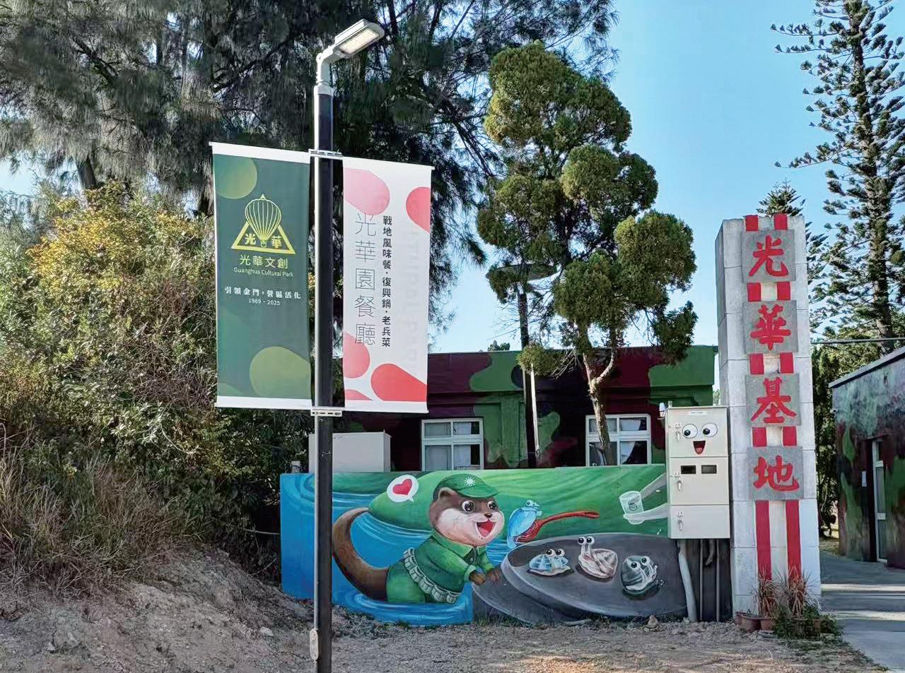 「金門光華園」是兩岸後冷戰時期國軍 的心戰基地,用空飄汽球做為宣傳戰的場域; 民國 58 年成立後,隸屬於國防部金門心戰總 隊,如今成為戰地遺址觀光景點之一。當年 「光華園空飄站」因為金門戰地政務解除, 成為保存戰地文物的一處新場域,也變身成 為新的文創場域。