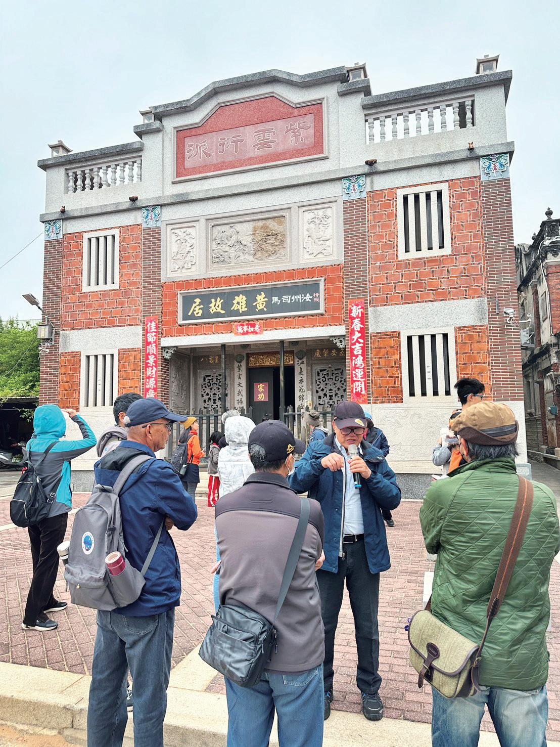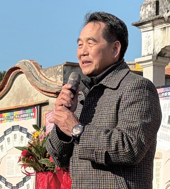 講師黃振良指出,這是一個典型的血緣 聚落,其源頭可追溯至明永樂年間,自同安 文化局副局長李海瑩(右 1),熱烈歡迎鄉親參與有意義的走讀活動。