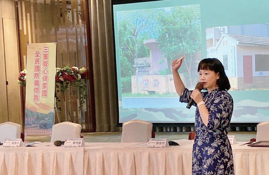 金門縣文化局長陳榮昌慰勉現場導覽志工辛勞,並合影。