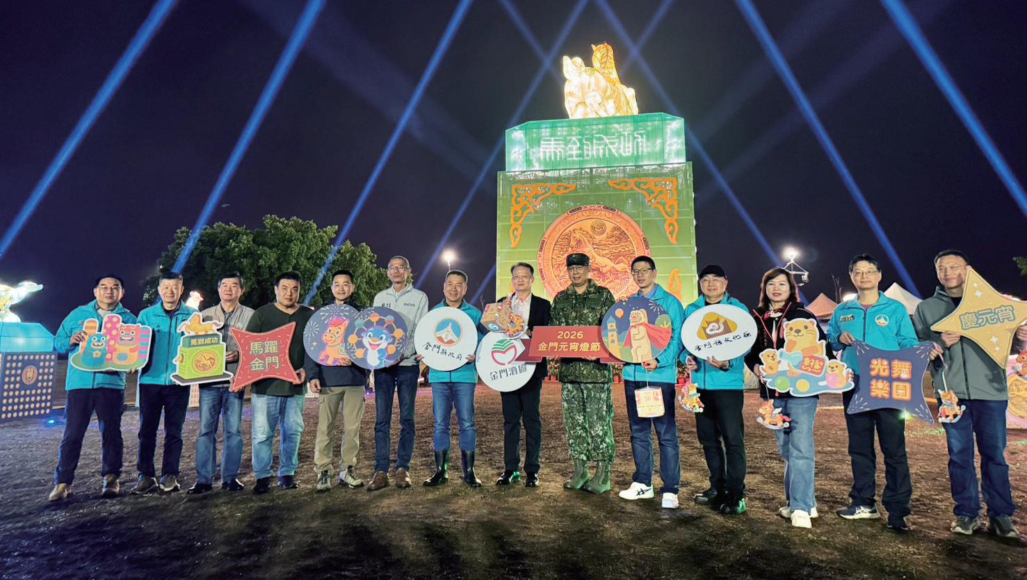 3 月 1 日晚間 7 時舉行主 燈點燈儀式,由副縣長陳祥麟主 持,主辦單位文化局長陳榮昌、 縣議員董森堡、行政院金馬聯合 服務中心執行長吳增允、金門防 衛指揮部政戰主任王石朋、金城 鎮長李誠智、金城鎮民代表會 主席郭永隆、金城鎮民代表倪于 媃,以及金門國家公園管理處秘 金門元宵燈節今年以「光舞樂園‧馬躍金門‧慶元宵」為主題,透過主 題燈組、光影藝術與科技互動裝置,打造充滿童趣與文化意象的夜間節慶 空間。