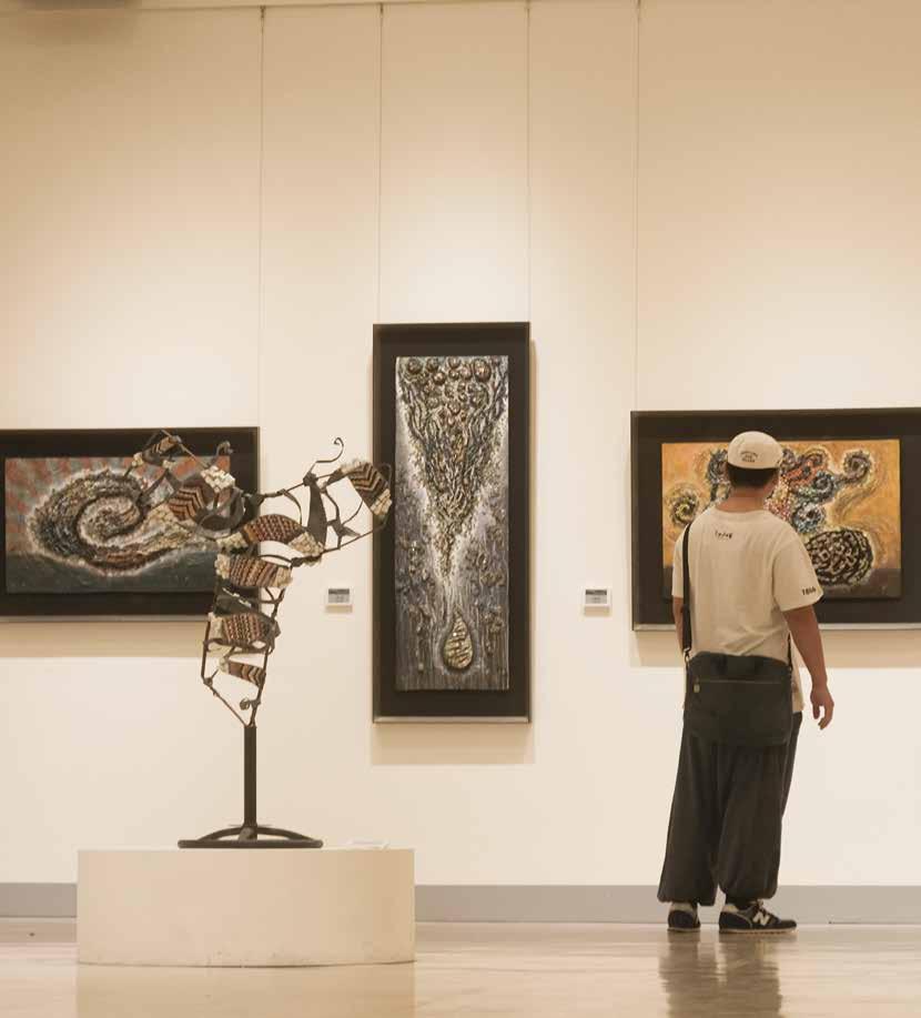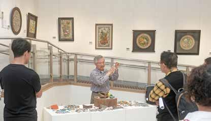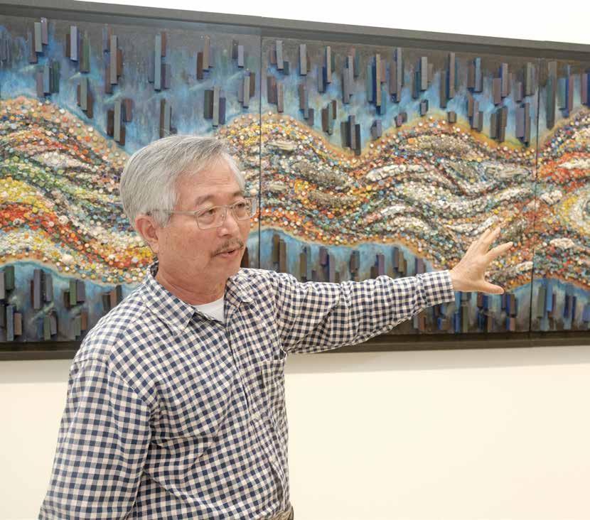今年以「夢想」為主題,故事主角是李麗芬、楊 玉梅、吳芳鶯、李春蘭、王世慈5位藝術家,涵蓋不 同的創作類別。其中,從護理背景轉向水墨創作的李 麗芬老師,將水墨藝術與生活結合,從衣服到茶几、 壁燈、甚至書包皆能成畫。直言「是膠彩畫選上了我」 的楊玉梅老師,曾因長輩認為「畫家沒前途」而擱置 畫筆,直到中年才正式投入膠彩創作。