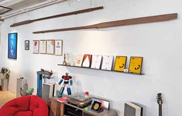 談起這2把許多人都有印象的 船槳,經營富興工廠的清筑設計總 監許清皓指出,他把2樓開闢成共 享空間,除了自己的團隊,另有網 頁、設計、花藝、行銷等約7個工 作室進駐,取名為「創意方舟」。
