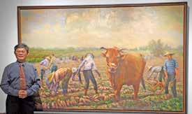 林俊賢與父親林智信作品《收成(竹山紅番薯)》合影