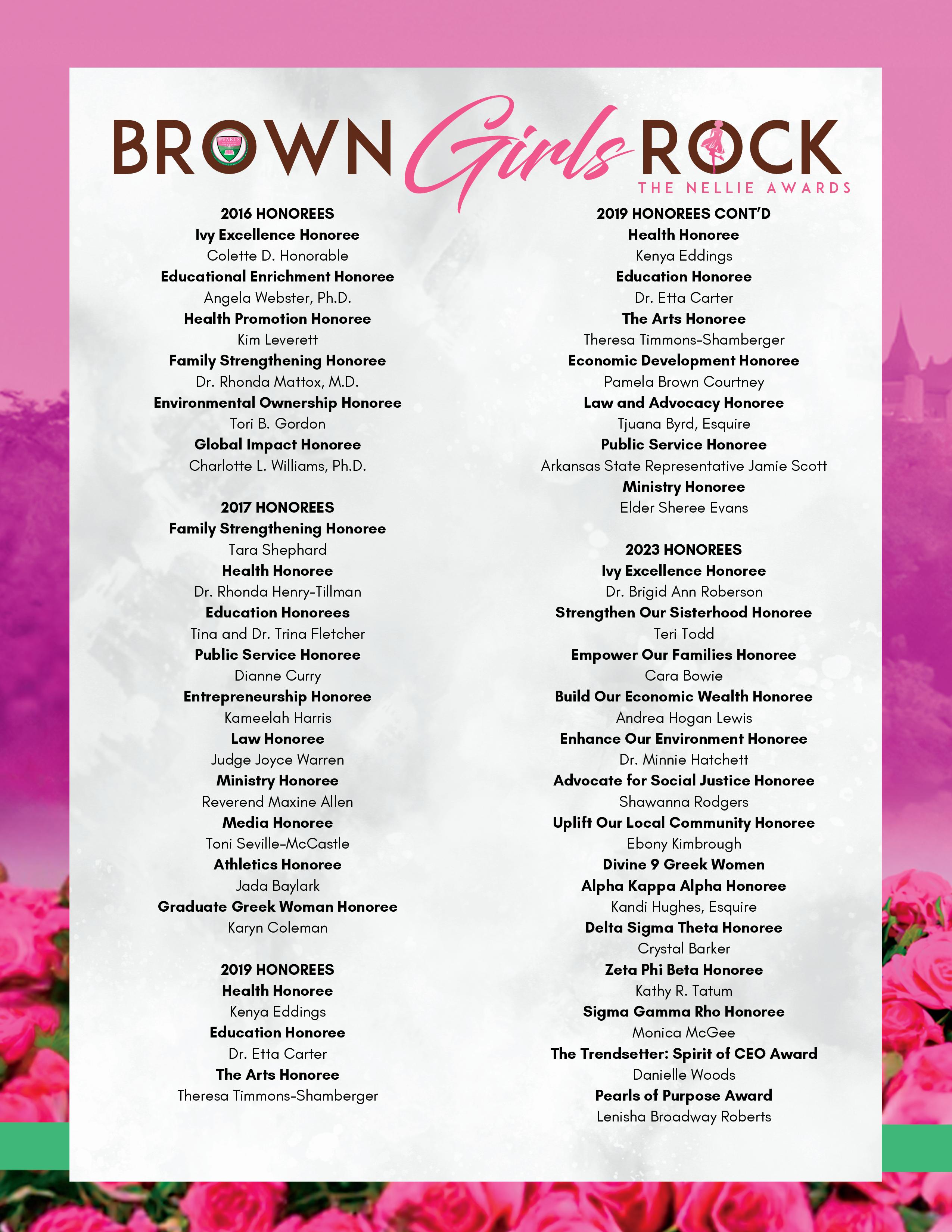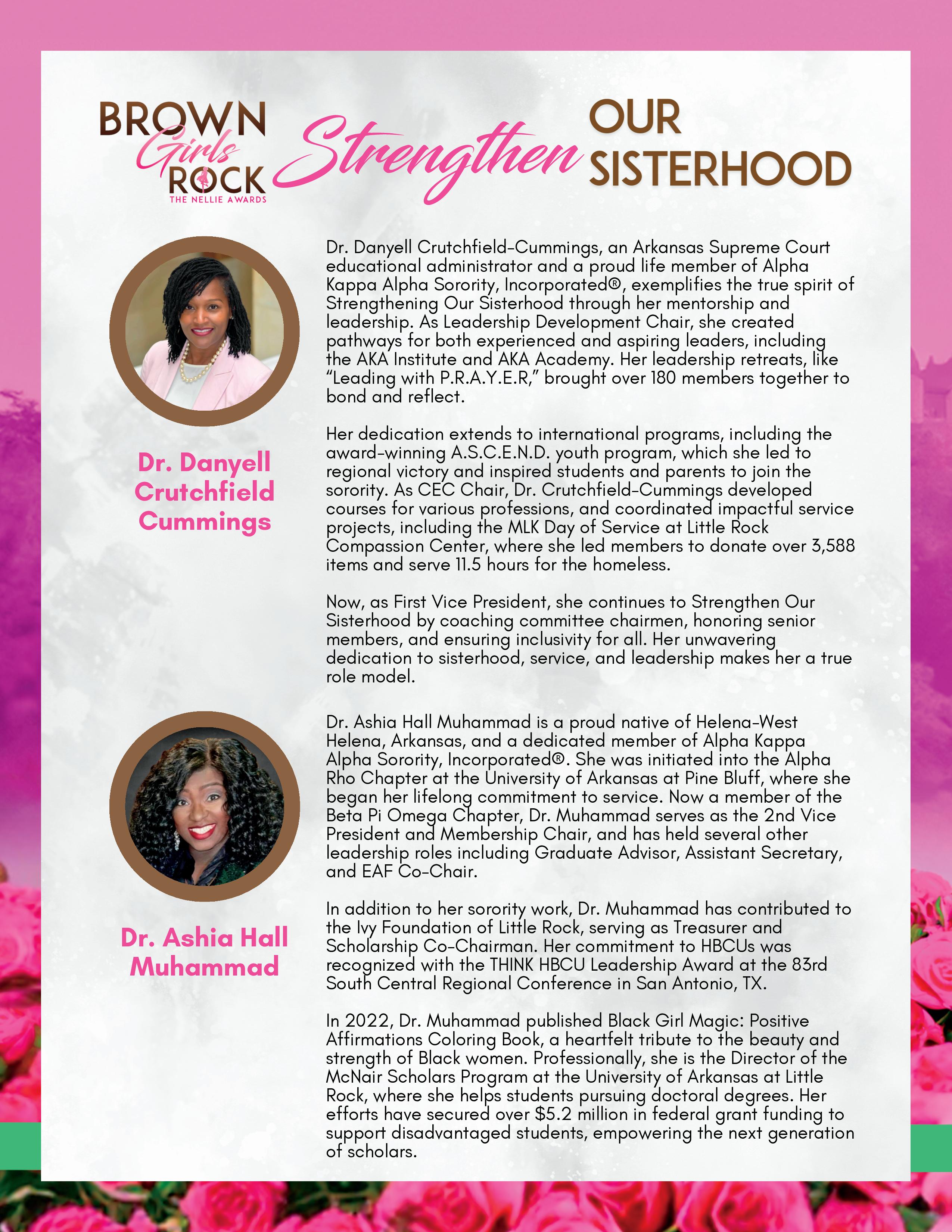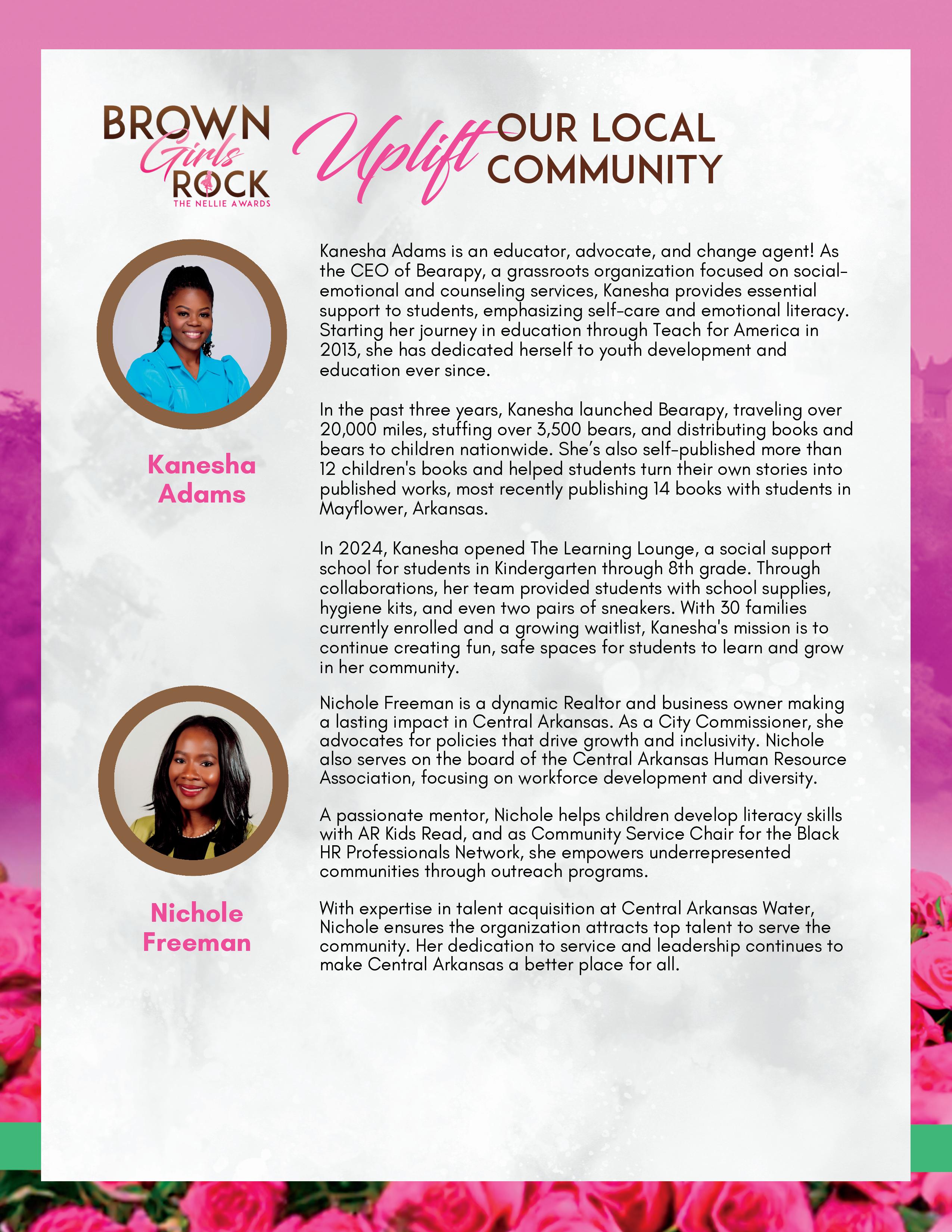 The PEARLS Foundation of Central Arkansas and Alpha Kappa Alpha Sorority, Inc. Chi Eta Omega Chapter present the 2025 Brown Girls Rock: The Nellie Awards hosted by Monique Samuels. This event celebrates influential women and girls of color who change the world through their community efforts. LaShawnDa Noel, PEARLS Foundation Principal Officer. Amber Broadway, President, Alpha Kappa Alpha Sorority, Inc. Chi Eta Omega Chapter