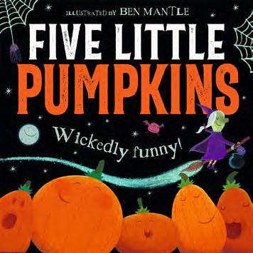 Five little pumpkins are sitting quietly on a gate until… night falls and they are joined by a cast of creepy characters – witches, spiders, bats, frogs and ghosts – all determined to cause plenty of Halloween mischief. What a terrific treat!