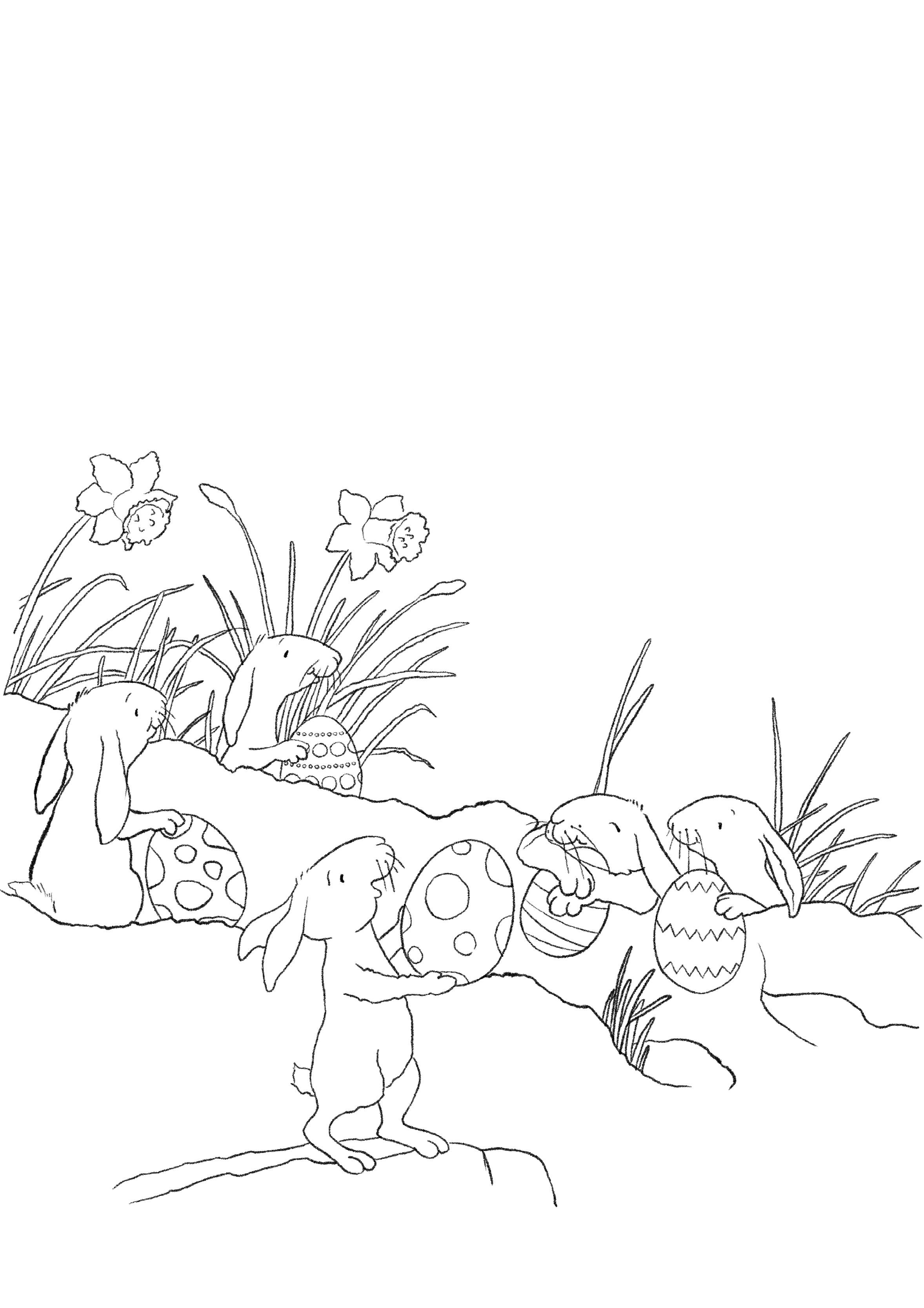 Can you colour in the picture and see how many Easter eggs can you find?