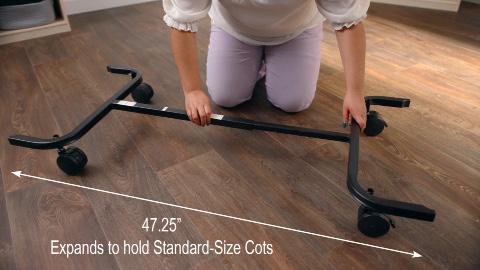 Includes 20 standard cots, 1 cot carrier, 4 activity panels, and 1 activity table top.