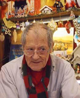 Wer durch das kleine Schaufenster in der Schusterstraße 13 blickt, fühlt sich wie in eine kunterbunte Puppenstube versetzt oder einen liebevoll eingerichteten Kinder-Kaufladen. Mit alten Möbeln, schönen Spielsachen und viel weihnachtlichem Kerzenglanz weckt der schmale Raum stimmungsvolle Kindheitsträume, die von traditionellen Krippenfiguren, musizierenden Engeln und schimmernden Christbaumvögeln bevölkert sind. Noch bis zum Frühjahr betreibt Günther Roth (88) seine Kunsthandwerkhandlung.