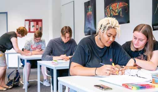 Auch was die Orientierung für die spätere Studien- oder Berufswahl angeht, leistet die Schule anhand unterschiedlicher Module unterstützende Hilfe. So werden etwa Studienfahrten, Tagesexkursionen und Projekttage –beispielsweise zu Medienkompetenz, Klimaschutz und Nachhaltigkeit – durchgeführt. Als moderner und ganzheitlicher Lernund Lebensraum hält die Paula Fürst Schule ihren rund 85 Jugendlichen, die aktuell einen eigenen Gebäudeteil der Schule nutzen, zwei Schülerküchen sowie weitere Aufenthalts- und Arbeitsbereiche bereit. Diese können eigenverantwortlich und in ruhiger Atmosphäre genutzt werden – sei es für Hausaufgaben, Recherchen, Lerngruppen oder zur gemeinsamen Vorbereitung auf Prüfungen. Die Klassenzimmer sind vollklimatisiert und mit zeitgemäßer Technik ausgestattet und stehen den Lernenden bei Bedarf bis 17 Uhr zur Verfügung.