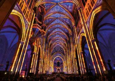 Das Straßburger Münster beeindruckt nicht nur durch seine Größe, sondern auch durch unzählige kunstvolle Details, die Besucher in Staunen versetzen. Der 142 Meter hohe gotische Turm gilt als Meisterstück an Leichtigkeit und Eleganz. Die Fassade erzählt von der Lebenswelt des Mittelalters. Hunderte Skulpturen wirken wie von der Mauer losgelöst und zaubern ein wechselndes Spiel von Licht und Schatten. Besonders eindrucksvoll ist der filigrane Westbau mit seinen drei Portalen. Das langgezogene Schiff wird beleuchtet von einem größtenteils im Original erhaltenen Ensemble sakraler Glasfenster. Herzstück ist das 16-teilige Rosettenfenster in der Westfassade. Ein eindrucksvolles Beispiel des spätgotischen Flamboyantstils ist die Sandsteinkanzel von Hans Hammer, 1485 fertiggestellt und eng verbunden mit dem Prediger Johann Geiler von Kaysersberg.