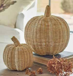 Wer Kürbis mag, der verliebt sich sicher auch in diese DekoObjekte aus natürlichem Rattangeflecht. Sie sind von Hand
