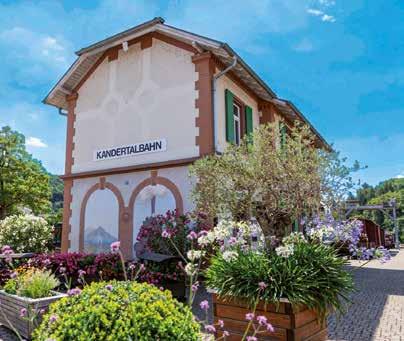 näher heran. Den Blicken verborgen ziehen sich westlich der Bahnstrecke die schmalen Pfade der Wolfsschlucht durch eine bizarre Felsenlandschaft mit urzeitlichen Kalksteinformationen. An der Brücke am Kanderner Ortseingang weist ein Schild den Weg in die Schlucht. Kunstliebhaber wird es vielleicht aber eher in Richtung