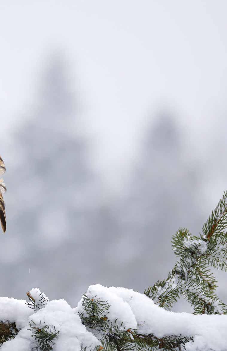 ›› Europas größte Eule widersteht im Schwarzwald auch den kalten Wintermonaten. Mit seinem dichten Gefieder ist er perfekt an Schnee und Frost angepasst. In den stillen Nächten hört man seinen tiefen Ruf „bu-ho“ oder „u-hu“ weit durch die verschneiten Täler hallen. Während andere Tiere Ruhe suchen, bleibt der Uhu aktiv: Er jagt Mäuse, Ratten und manchmal auch kleinere Vögel. Seine scharfen Augen erkennen Beute selbst bei schwachem Mondlicht. In felsigen Nischen oder alten Bäumen sucht er Schutz vor Sturm und Kälte – majestätisch und geheimnisvoll beherrscht er den winterlichen Schwarzwald.