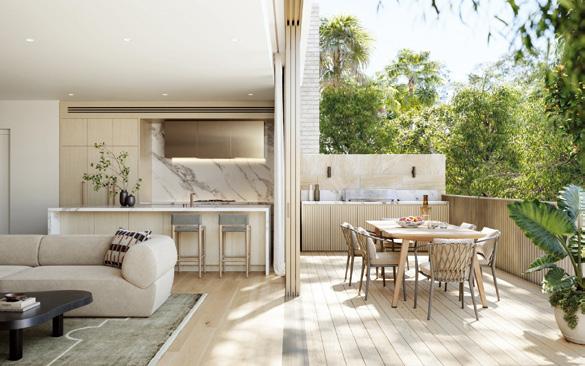 飯廳的集成細木工製品經過精心設計,有酒吧台和葡 萄酒冰箱,定制奢華室外廚房,帶嵌入式燒烤架和寬敞檯 面,盡享休閒生活。