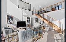 該家居上下2層,坐落於靜謐 街道,占地約442平方米。屋 內擁有罕見的2.9米挑高天花 板(現已不再獲批),配水晶 吊燈,空間開闊。