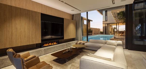 宅邸由3座亭式建筑组成,通过玻璃连廊无缝衔接,室内外生活空间总面积超600㎡。手工干石外 墙搭配精心打理的园景,营造出宁静和谐的居住氛围;核心生活区配备高耸斜面穹顶、燃木壁炉与全景 落地窗,无缝衔接恒温咸水泳池,兼顾精致宴客与日常舒适起居。