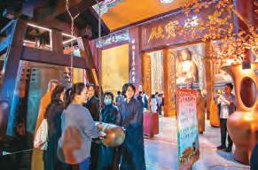 南屏別院蔡芝蘋兒時就跟著母親, 春節在大雄寶殿當義工,將一枝又一 枝的香分送給往來遊客。如今帶著兩 個分別為11歲和6歲的孩子朝山,就 像是回到家一樣,看到全新的大雄寶 殿,非常感動,直呼:「大雄寶殿蓋 好了!」希望孩子也能廣結善緣。