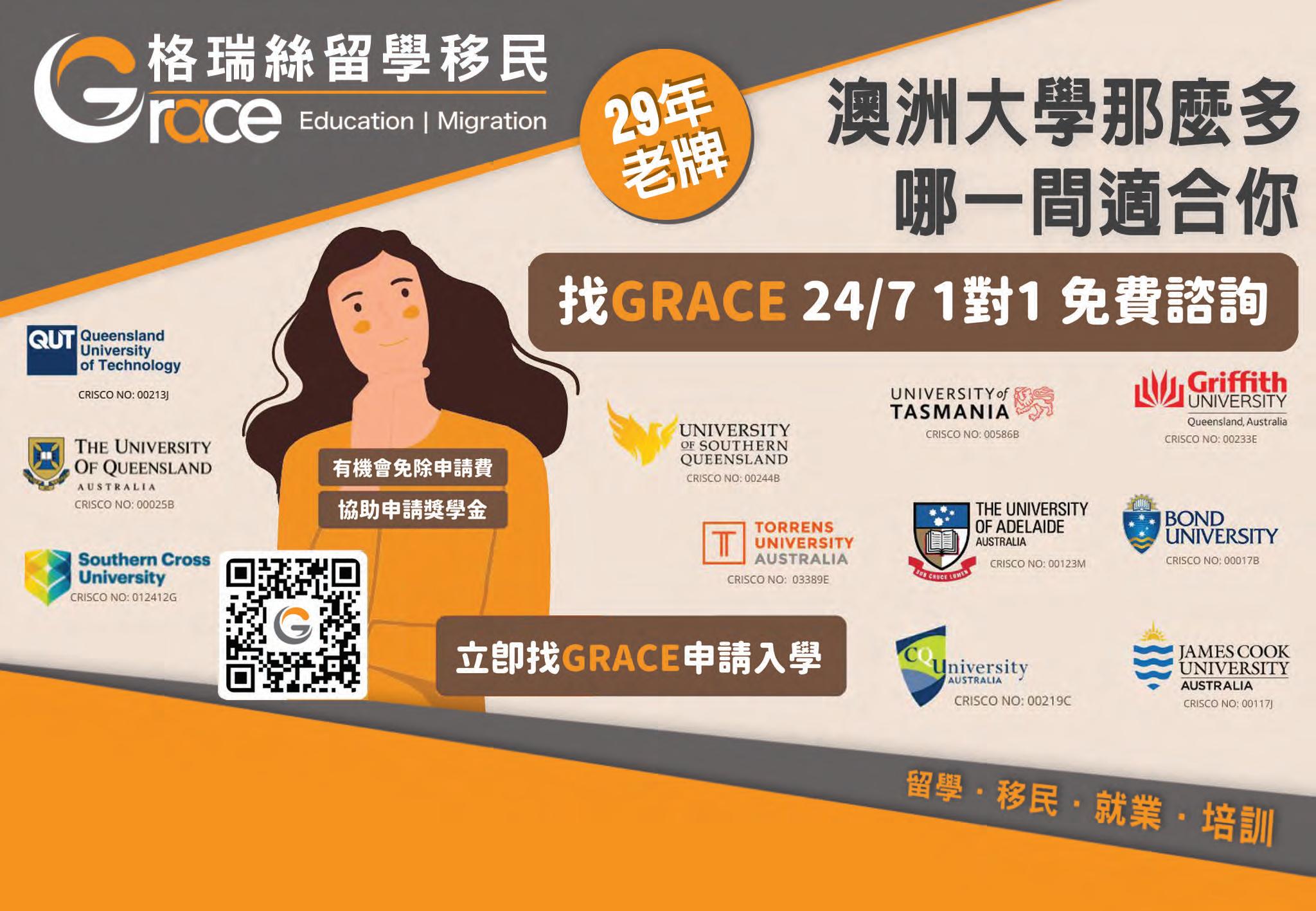 Facebook:@GraceQLD/粉絲專頁:格瑞絲留學移民GraceEducation&Migration