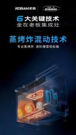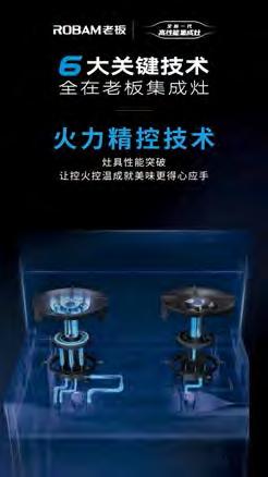 老板全新一代高性能集成灶以 驚人速度登頂TOP1的背後,是老板 電器在技術投入上不計成本,集44 年品牌積澱,日以繼夜潛心鑽研,帶 來6大關鍵技術。在有限空間內實 現領先性能、智慧體驗的有機融合, 為集成灶領域注入更多科技動力, 為未來家庭廚房提供更高標準的集 成解決方案!
