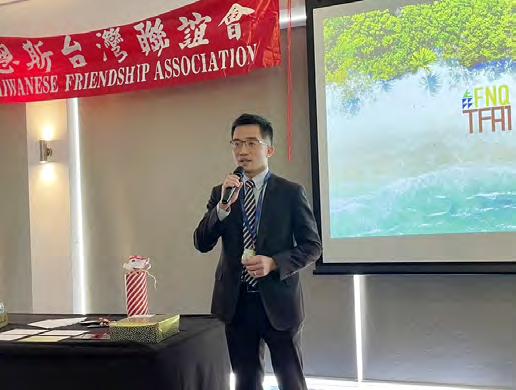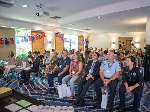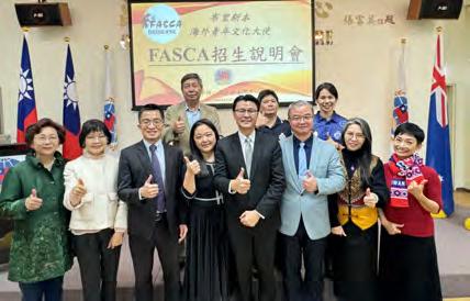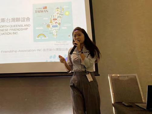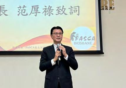 當日特別安排布里斯本FASCA諮詢 導師楊淑珠、林季平、盧宛玉等3人, 分別上臺介紹師資背景以及FASCA年 度培訓未來規劃,包括各類臺灣文化 課程、社團活動參與、民俗技藝等內 容,活動下半場另特別邀請昆士蘭警 務處警民聯絡官黃莉善及岑永雯分享 志工服務安全與防詐騙宣導,駐布里 斯本辦事處林鴻堯副組長亦介紹領務