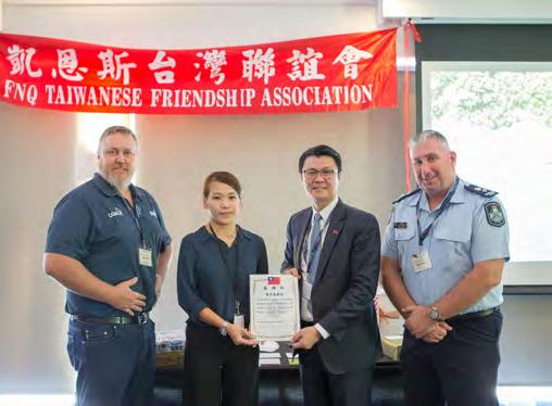 凱恩斯臺灣聯誼會於2024年6 月23日上午在當地Novotel飯店盛大 舉行慶祝成立10周年活動,駐布里 斯本辦事處處長范厚祿偕副組長林 鴻堯及昆士蘭臺灣中心主任歐陽群 專程前往出席向鄉親致意,當天參 加貴賓包括主辦單位黃卉逸會長、 僑務顧問馬舜之、北昆僑界急難救 助協會會長王欽弘、凱恩斯副市長 Brett Olds、昆士蘭警務處警司Mick Searle、多位凱恩斯臺灣聯誼會幹部 與會員、旅居北昆臺灣鄉親以及各
