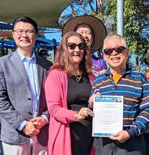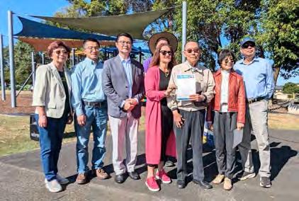 當日參加者非常踴躍,出席的有 范厚祿處長全家、歐陽群主任全家、 Kim Marx 議員、黃文毅議員、陳秋燕 委員、羅富齡委員、陳春龍諮委、柯 文耀諮委、徐瑞雲諮委、林季平執行 長及台僑十幾個社團共襄盛舉,大家 㩗家帶眷的盛況空前,場面非常溫 馨。 Cr Kim mark 並頒發感謝狀給Llaine Campbell (感謝她把紀念碑捐贈給布 里斯本議會)、陳春龍諮詢委員、羅 富齡委員、陳秋燕委員、柯文耀諮詢 委員、黃連星資深記者、戴 玲 媛促進