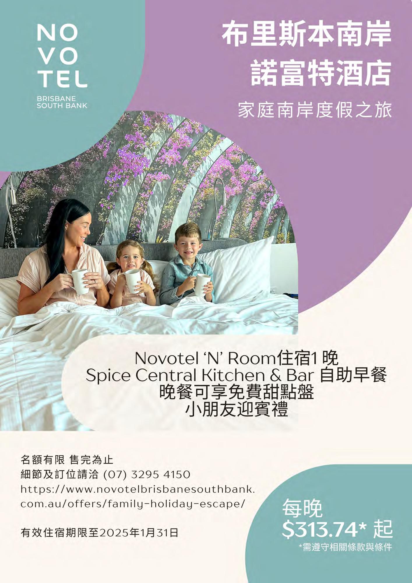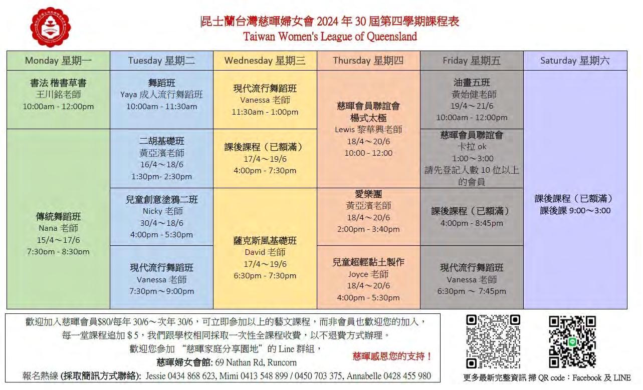 2024年「海外青年文化大使 (FASCA)」布里斯本新生培訓將於9 月26日至28日在昆士蘭臺灣中心展 開3天的專業培訓活動,歡迎12歲 到17歲華裔青少年踴躍報名參加, 成為 FASCA團隊一員。布里斯本 (FASCA)報名詳情https://wceo.regfox. com/2024fasca-asiapacific或洽詢昆士 蘭臺灣中心:電話(07)33457066、 Email:qldtaiwan@gmail.com